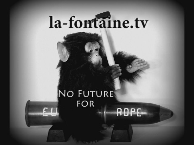 ............ gelöscht Der meistgesehene Clip: Speculum movie Der Clip zu dieser Installation ist bewusst im Stil eines "Bonbon - Pornos" gehalten. Anstelle der erwarteten vaginalen Untersuchung wird ein "Gespräch" zwischen Spekula dargestellt. Die erwartete pornografische Darstellung löst sich auf und der Betrachter erkennt schnell, dass es sich nicht um einen hardcore Film handelt, sondern dass das Speculum einer sehr banalen Aktivität nachgeht. Die bunten "Bonbons," Symbol für das "Geblubber" einer alltäglichen Unterhaltung, transportieren die medizinischen Geräte in eine groteske Situation. Die Aufrufszahlen des Clips sind Bestandteil des Werkes und erhalten im Zusammenhang mit den anderen Installationen der Serie "Internet" ihre besondere Bedeutung. Zusammen mit anderen Clips wurde die Rohfassung zunächst im Internet veröffentlicht. Bereits nach einer Woche liefen die Aufrufszahlen dieses Clips den anderen davon. Konkret wurde das "Speculum movie" etwa zehnmal mehr aufgerufen als " Gefangen im Internet". Installation Serie Europa Pas d’avenir pour l’Europe? Combien de temps le singe peut-il encore marteler? Installation inquietante sur le sujet: l’avenir de l’Europe. Confonté avec des idées toujours nouvelles et des opérations de sauvetage, beaucoup d’Européens ont deja fait interieurement leurs adieux à l’Europe. Le singe martele la grenade jusqu'a ce que celle ci explose un jour. Une image impressionante.