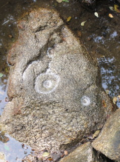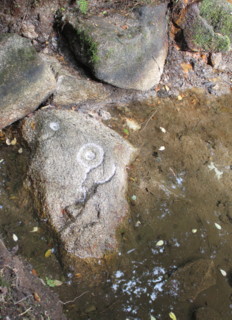 Daneben ein aus dem Stein gehauenes Becken. 1.) Schalensteine