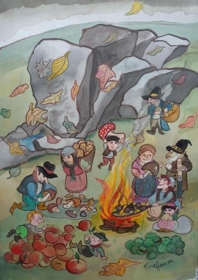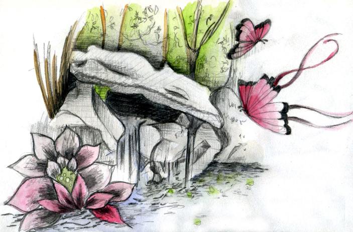 | La fontaine de Kermore, Commune de Séglien Morbihan La fontaine de Kermore devient une source d’inspiration ! Laissez-vous inspirer par la fontaine de Kermore et traduisez cette inspiration dans une illustration faisant jouer toute votre imagination. Que vous voyiez un romain, qui sacrifie quelques sesterces à Sirona, la déesse gallo-romaine des sources, ou des hommes de l’âge de pierre qui, au risque de leur vie, entourent la fontaine de mégalithes pouvant peser plusieurs tonnes, ou le paysan breton qui porte son enfant malade dans ses bras et fait trois fois le tour des pierres pour transférer l’énergie du lieu sur son enfant ; la fontaine propose de nombreux motifs captivants. Rassemblez les druides près de la fontaine ou imaginez-vous la fontaine de Kermore dans un brouillard mystique d’espace et d’atmosphère dans lequel des fées et des magiciens évoquent la force de l’eau et des petits kermorigans folâtres s’amusent sur les rochers. Galerie la fontaine de Kermore Pour agrandir - clic sur l'image, s. v. p. Pour plus d'informations sur l'artiste, appuyez sur le nom de l'artiste ou sur l'abréviation de son nom. Exemple : Jaques Dupuy ou bek 1 et cetera.