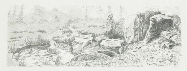 ....édifice préhistorique très rare. Probablement la seule source avec entourage préhistorique.
