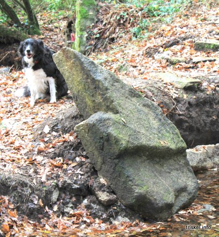 Interprétation : il est évident que le menhir a été travaillé à l'âge de pierre. Directement à côté du menhir, à une distance de 1 m, se trouve une pierre horizontale présentant plusieurs dépressions circulaires. Les plus vieilles pierres en forme de bol ou de coupe datent de l'Age de pierre moyen (8000 à 4500 av. J.-C.).
