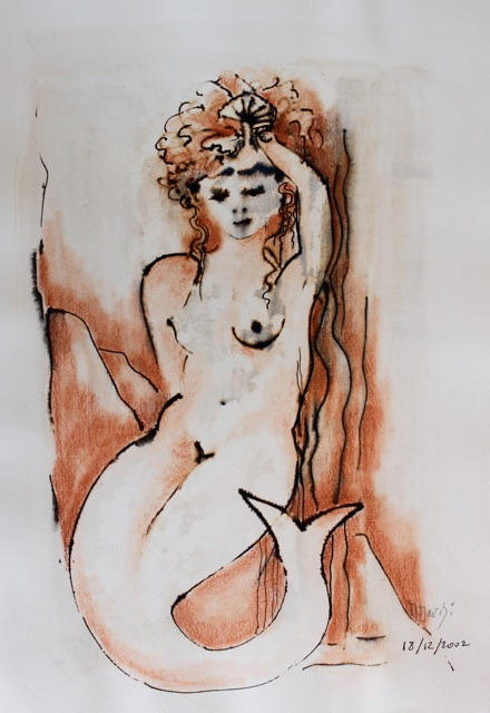 | encre de chine et fusain sirène