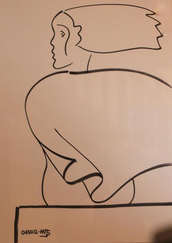 STORYBOARD Réalisé à titre éducatif, ce dessin sur toile est présenté comme une bande dessinée "géante"pour "capter l'oeil des enfants" ! L'objectif est "d'imaginer une histoire" qui, bien évidemment, sera différente pour chacun ! Les indices : la voile blanche à l'horizon (symbolise la progression de l'histoire), la rambarde rouge (symbolise la continuité de l'histoire, c'est le "fil rouge" : les personnages sont-ils sur un paquebot ou dans un immeuble ?), la sortie progressive des 4 personnages (Pourquoi étaient-ils réunis ? Pourquoi l'enfant sort-il le premier ? Peut-on imaginer les pensées des personnages par la couleur de leurs vêtments ? Que symbolisent les couleurs limitées au jaune, gris et vert ? etc...). A chacun d'imaginer son propre scenario pour réaliser son film imaginaire... _______________ Expo: Le Faouët 2014