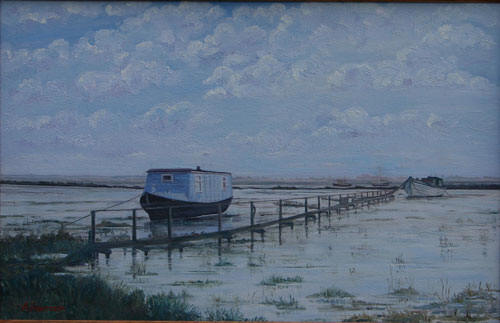 Ann Harrison-Ray has had for all of her life, a passion for drawing and painting, but never the time to follow her life-long ambitions to paint and develop her talent until recently. Happily, now she has moved to western Brittany with her husband to retire, her new life in the French country-side has provided the opportunity and also the inspiration. The paintings displayed here in this gallery represent much of her oil, watercolour and pastel work, some of which have sold to admirers.In November 2006, Ann's painting 'Blackwater Barge' won first prize in the Glenmor regional art competition (see inset above). Many of her paintings are thoughtful studies of picturesque landscapes while others portray calm still life subjects. |